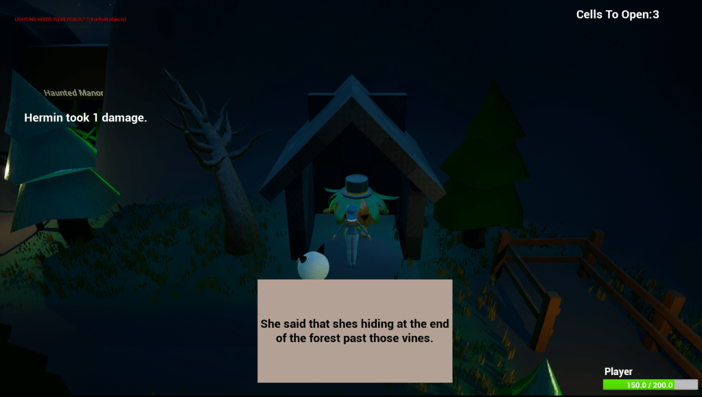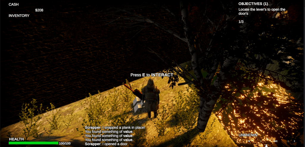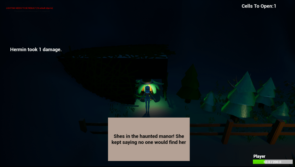 - Narrative Design (quests and dialogue between interactable NPC’s)