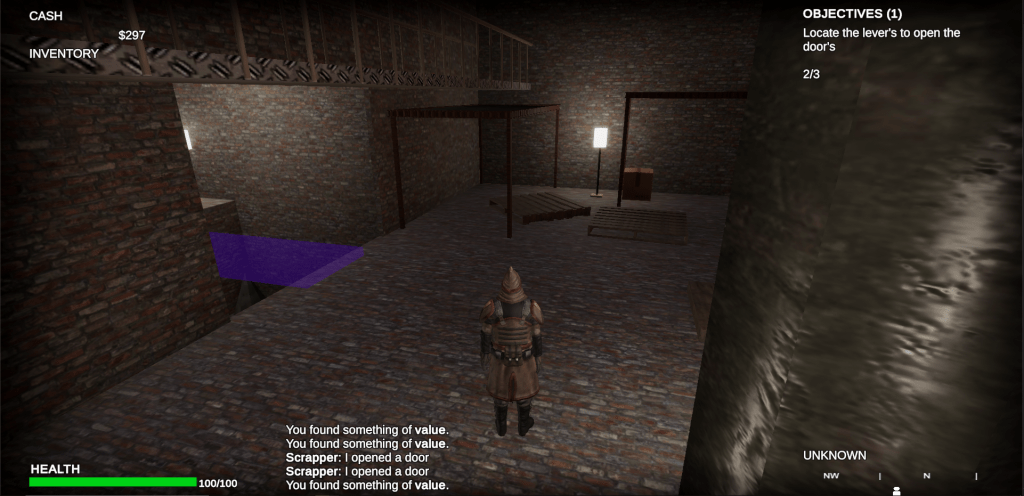 On Surveillance I was in charge of the overall Game Development including but not limited to – Scripting, Game Design, Level Design, and UI/UX. My duties included